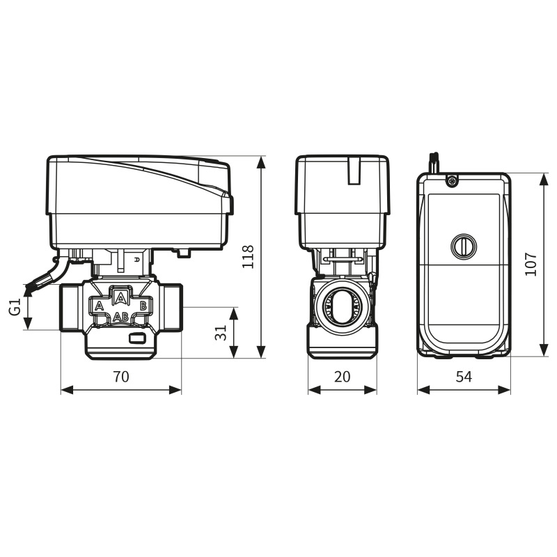 1664300 3-ходовий зонний клапан AZV643 DN20, G1", kvs 8, 230В АС 2 точки, з кабелем