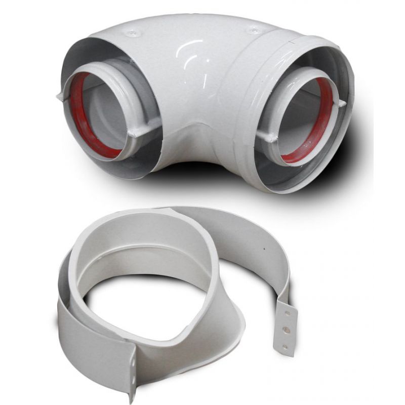 Коліно для котла 90 град. МАМА-МАМА коаксіальний d60/100 AL + FE. Дана продукція сертифікована і має сертифікат CE (Conformité Européenne - «європейське відповідність»)
