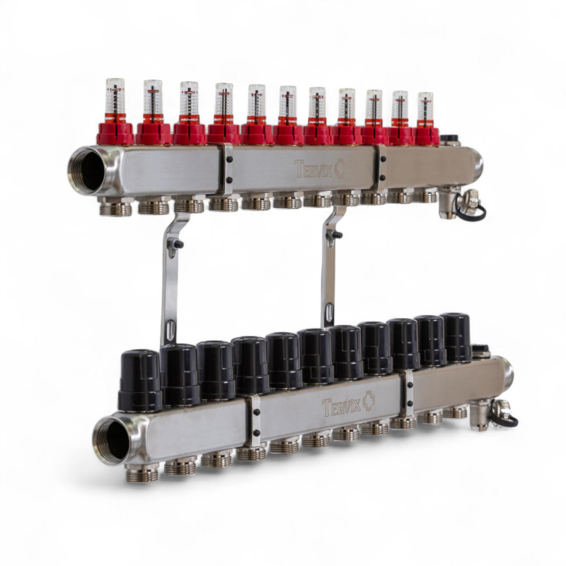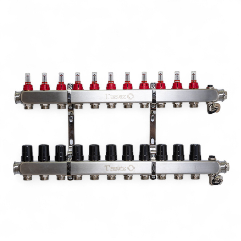 | Комплектація | 1. Розподільча балка (2 шт) 2. Витратоміри (від 2 до 12 шт) 3. Ручний регулятор потоку (від 2 до 12 шт) 4. Настінний кронштейн (2 шт) 5. Інструкція з експлуатації (1 шт) 6. Ручка для регулювання пропуску рідини через витратомір (1 шт) 7. Кран «Маєвського», 1. Розподільча балка (2 шт) 2. Витратоміри (від 2 до 12 шт) 3. Ручний регулятор потоку (від 2 до 12 шт) 4. Настінний кронштейн (2 шт) 5. Інструкція з експлуатації (1 шт) 6. Ручка для регулювання пропуску рідини через витратомір (1 шт) 7. Кран «Маєвського» |