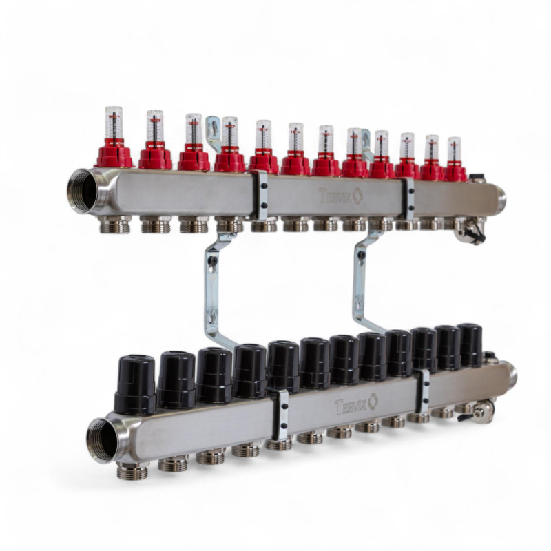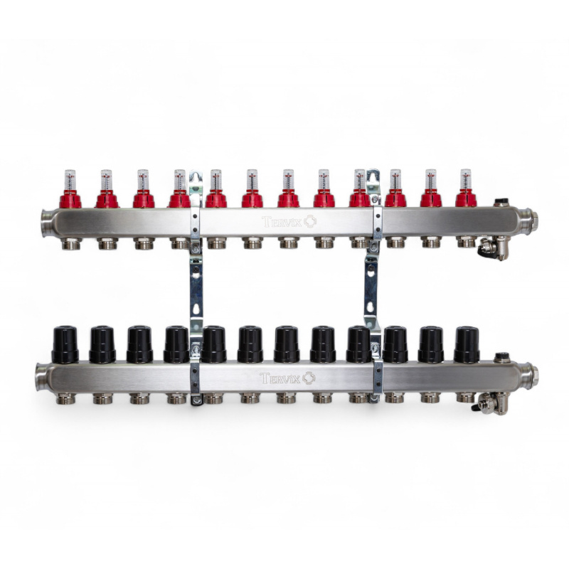 | Комплектація | 1. Розподільча балка (2 шт) 2. Витратоміри (від 2 до 12 шт) 3. Ручний регулятор потоку (від 2 до 12 шт) 4. Настінний кронштейн (2 шт) 5. Інструкція з експлуатації (1 шт) 6. Ручка для регулювання пропуску рідини через витратомір (1 шт) 7. Кран «Маєвського», 1. Розподільча балка (2 шт) 2. Витратоміри (від 2 до 12 шт) 3. Ручний регулятор потоку (від 2 до 12 шт) 4. Настінний кронштейн (2 шт) 5. Інструкція з експлуатації (1 шт) 6. Ручка для регулювання пропуску рідини через витратомір (1 шт) 7. Кран «Маєвського» |