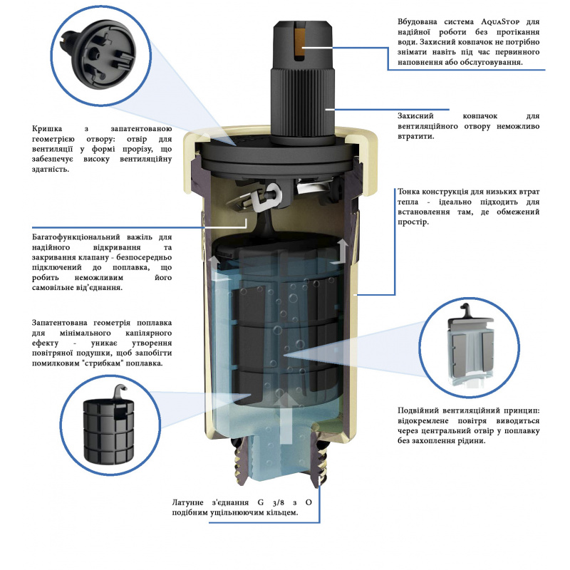 корпус: латунь, поплавок і кришка - високоякісний тефлон