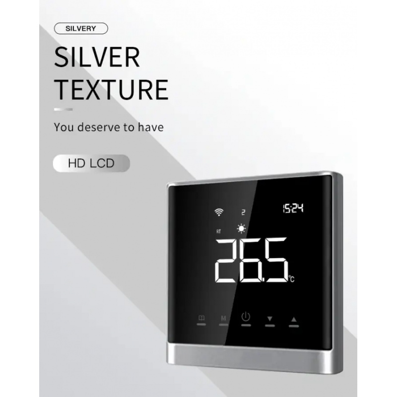 4HEAT терморегулятор теплої підлоги Срібло Сенсорний (4HT.AE668) для водяної або електричної теплої підлоги, + зовнішній датчик для теплої підлоги 3000 мм.