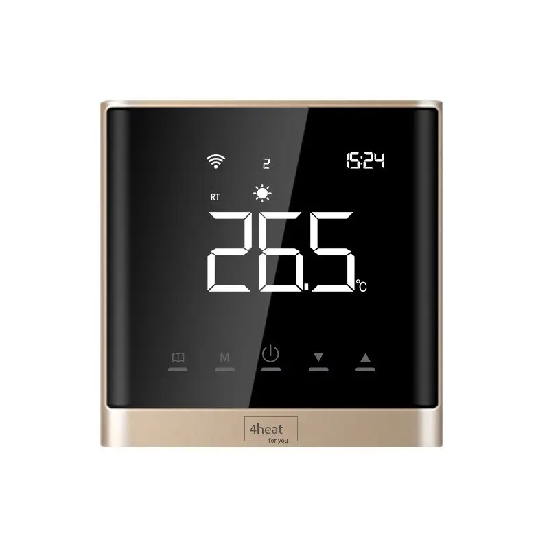 4HEAT Wi-Fi терморегулятор теплої підлоги Золото Сенсорний (4HT.AE668G.WF) для водяної або електричної теплої підлоги, + зовнішній датчик для теплої підлоги 3000 мм.