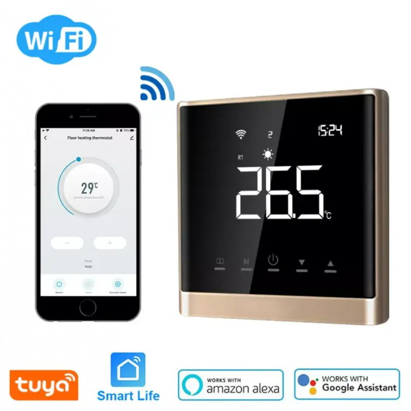 4HEAT AE668G.WF ЗолотоWi-Fi терморегулятор – це сучасний пристрій для керування електричною теплою підлогою, який поєднує стильний чорний дизайн із 3D-скляною панеллю та передові технології. Завдяки підтримці Wi-Fi та інтеграції з додатком Tuya Smart, цей сенсорний терморегулятор дозволяє зручно керувати температурою з будь-якого місця через смартфон. У магазині iVen.com.ua ви можете придбати цей терморегулятор із швидкою доставкою по Україні та офіційною гарантією 24 місяці.