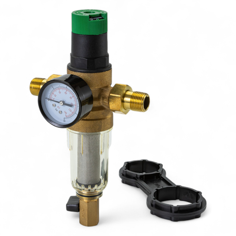 | Комплектация | 1.Самопромивний фільтр в зборі з редуктором тиску (1 шт) 2. Кульовий клапан для зливу (1 шт) 3.Накінечник для шлангу (1шт) 4.Подвійний ключ для колби (1 шт) 5.Інструкція українською мовою (1 шт).; 6. Манометр 0-10 бар - 1 шт. |