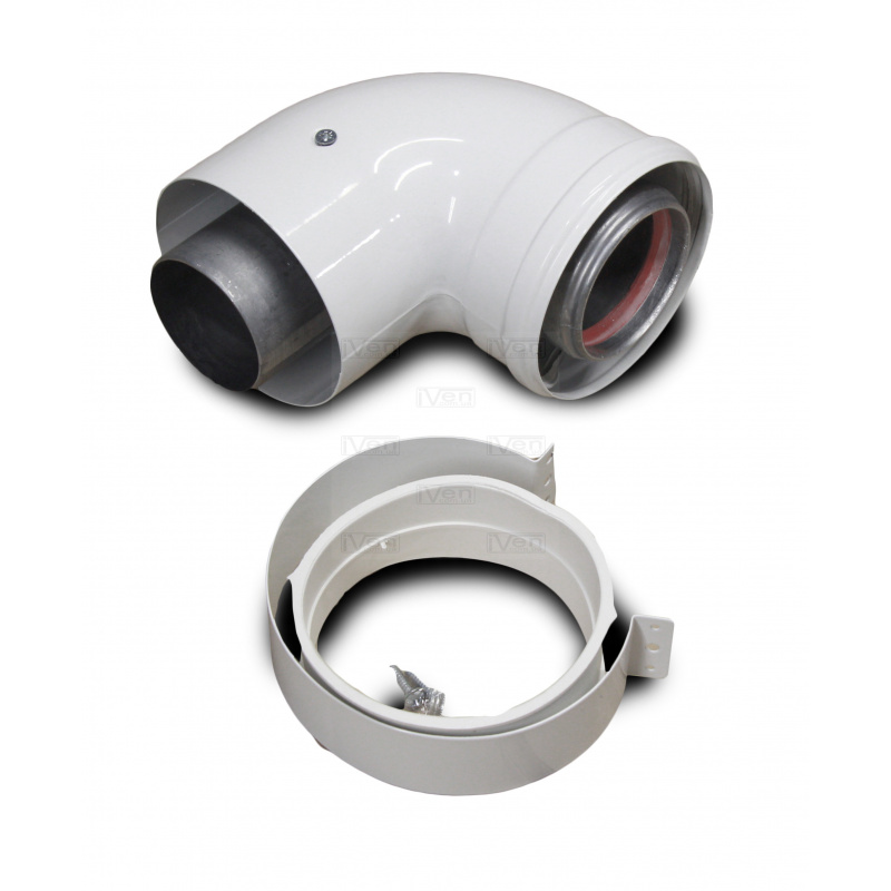 Стартовый угол, установочный угол, угол с фланцем с диаметром коаксиальное трубы 60/100 для газовых котлов фирм: Vaillant, Ariston, Saunier Duval, Protherm. Данная продукция сертифицированная и имеет сертификат CE (Conformité Européenne — «европейское соответствие»)