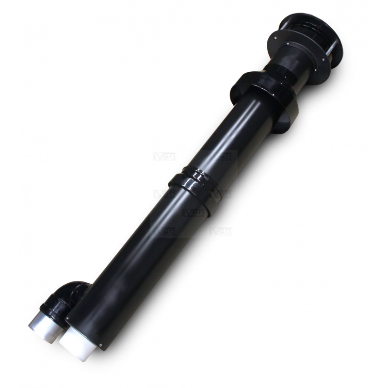 Коаксиальная вертикальная конденсационная труба с ветрозащитой Для отвода дымовых газов и подачи воздуха на горение d80/125 с подключением к трубе d80+d80 к котлу.