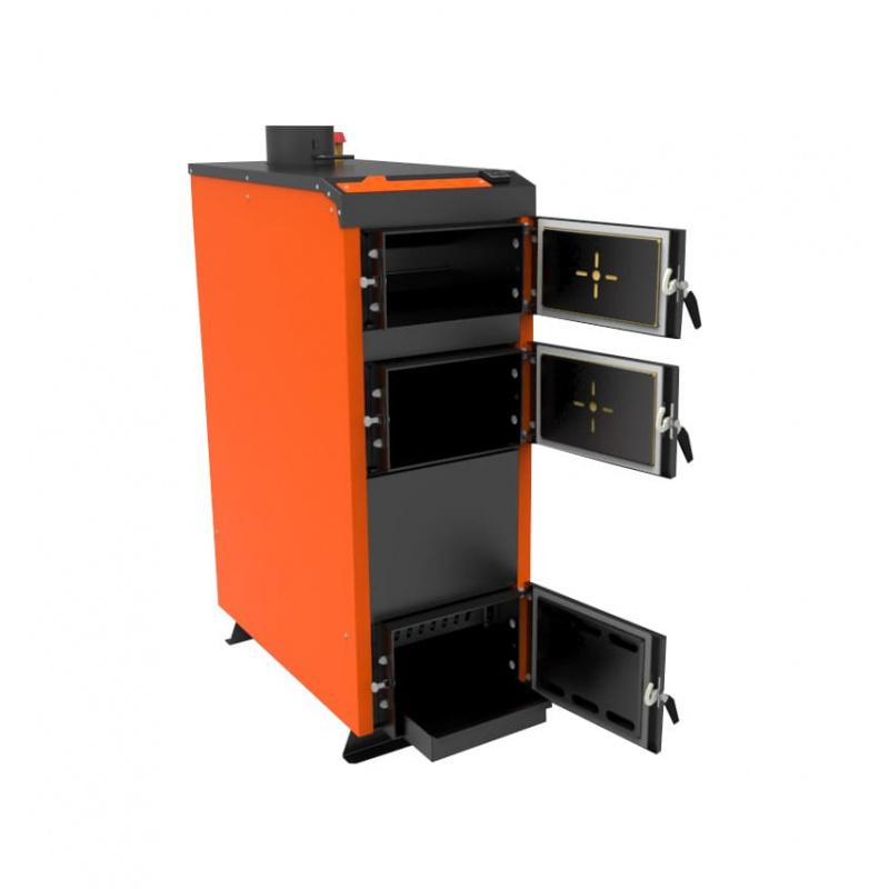 Водоохолоджувальні колосники з цільностягнутої труби та 2-х ходовий пенальний теплообмінник, а в котлах від 40 кВт 3-х ходовий - дозволяє максимально збільшити корисну площу зняття тепла, а також зручно чиститься через верхні ревізійні дверцята. Найбільша камера згоряння (топка) на ринку України в цьому класі