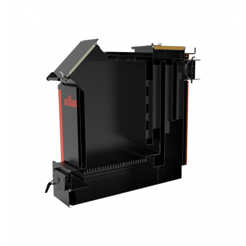 Конструкційна особливість полегшує початковий розпал котла і запобігає задимленню топкового приміщення під час довантаження палива в котел. Бокове (фронтальна) завантаження палива забезпечує ще більшу зручність експлуатації.