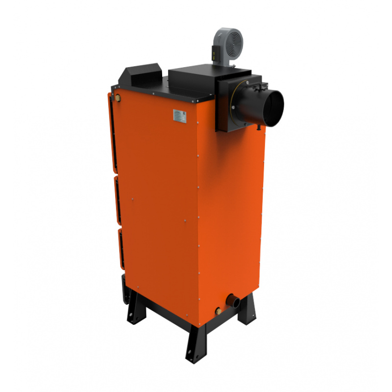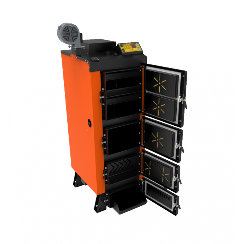 Чотириходовий теплообмінник пенального типу дозволяє максимально збільшити корисну площу зняття тепла, а також зручно чиститься через верхні ревізійні дверцята.