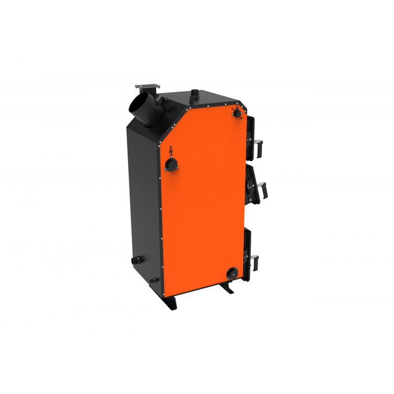 Водоохолоджувальні колосники з цільностягнутої труби та теплообмінник з 3 пеналами дозволяє максимально збільшити корисну площу зняття тепла, а також зручно чиститься через верхні ревізійні дверцята.