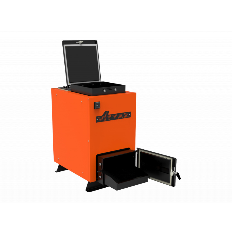Незважаючи на компактні розміри, котел має містку топку (від 47 до 87 л). VITYAZ MINI розрахований на встановлення додаткового бункера, що збільшує час горіння до 16 годин.