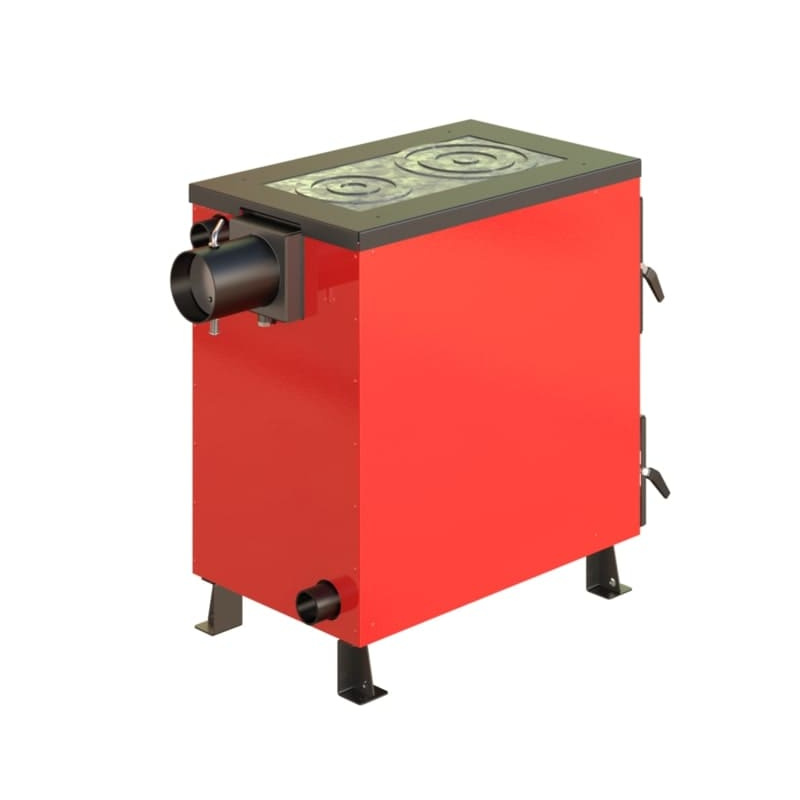 Види палива: дрова, відходи деревини, паливні брикети, вугілля (кам'яне, деревне, буре), вугільні брикети, торф, агробрікети. Тривалість горіння на 1 завантаженні: від 5 до 18 годин (в залежності від теплотворної здатності та вологості використовуваного палива, а також від моделі котла) Сталь: Котельна холоднокатана сталь 09Г2С Колосники: Чавунні ККД: до 80% Гарантія: 4 роки Можлива установка: регулятора тяги, електричного Тена з блоком управління У комплект поставки входить: - датчик температури; - зольний ящик; - паспорт; - гарантійний талон;