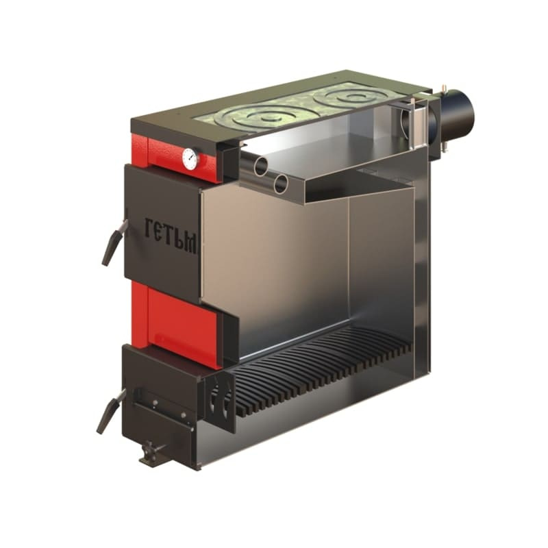 Топка котлів "Гетьман" має збільшені габарити, що забезпечує більш тривалу роботу котла при одноразовому завантаженні палива. Це означає, що вам потрібно буде рідше додавати паливо. Навіть у найменших котлах глибина топки становить 40 см, а в моделі "Тайга" — цілих 71 см.