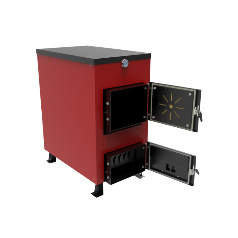 Види палива: дрова, відходи деревини, паливні брикети, вугілля (кам'яне, деревне, буре), вугільні брикети, торф, агробрікети. Тривалість горіння на 1 завантаженні: від 5 до 18 годин (в залежності від теплотворної здатності та вологості використовуваного палива, а також від моделі котла) Сталь: Котельна холоднокатана сталь 09Г2С Колосники: Чавунні ККД: до 80% Гарантія: 4 роки Можлива установка: регулятора тяги, електричного Тена з блоком управління У комплект поставки входить: - датчик температури; - зольний ящик; - паспорт; - гарантійний талон;