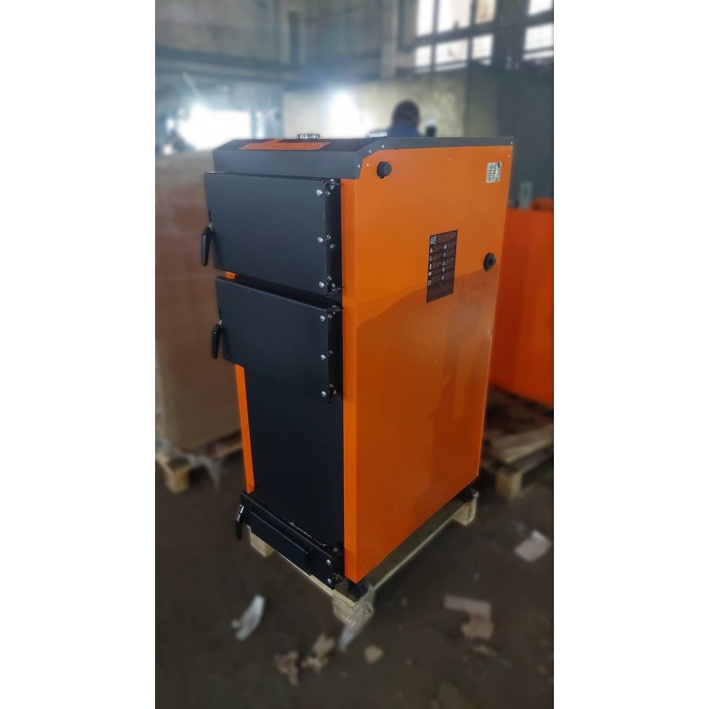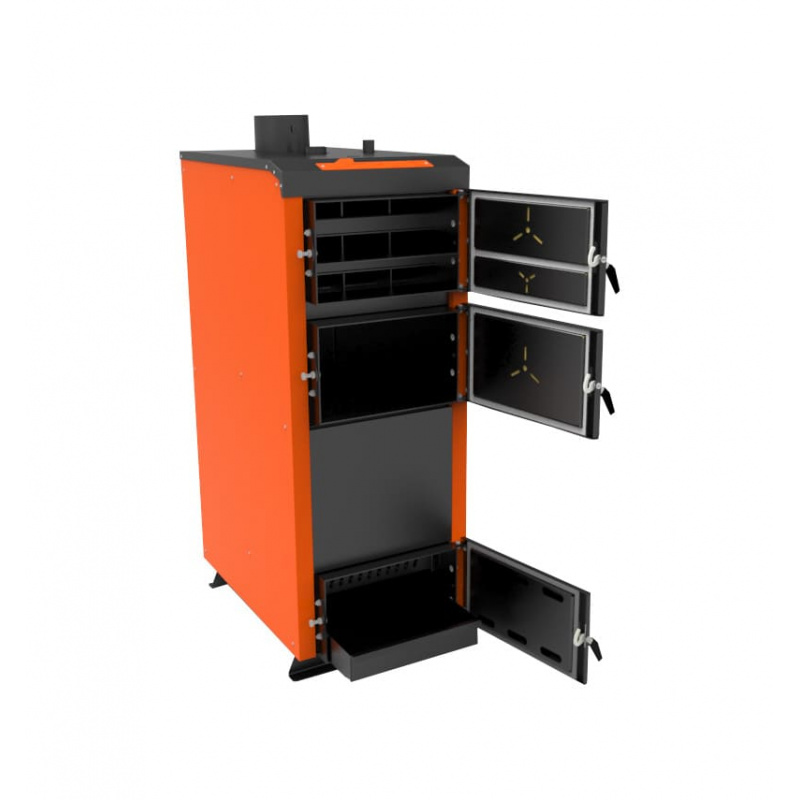 Види палива: дрова, відходи деревини, паливні брикети, вугілля (кам'яне, деревне, буре), вугільні брикети, торф, агробрікети. Тривалість горіння на 1 завантаженні: від 8 до 24 годин (в залежності від теплотворної здатності та вологості використовуваного палива, а також від моделі котла) Сталь: котельна холоднокатана сталь 09Г2С Колосники: водонаповнені (труба ціліснотянута товстостінна товщиною 5 мм) ККД: до 87% Гарантія: 4 рокиМожлива установка: регулятора тяги, електричного тена з блоком управління, електронної автоматики з вентиляторомВ комплект поставки входить: - скидний клапан; - датчик температури; - зольний ящик; - паспорт; - гарантійний талон;