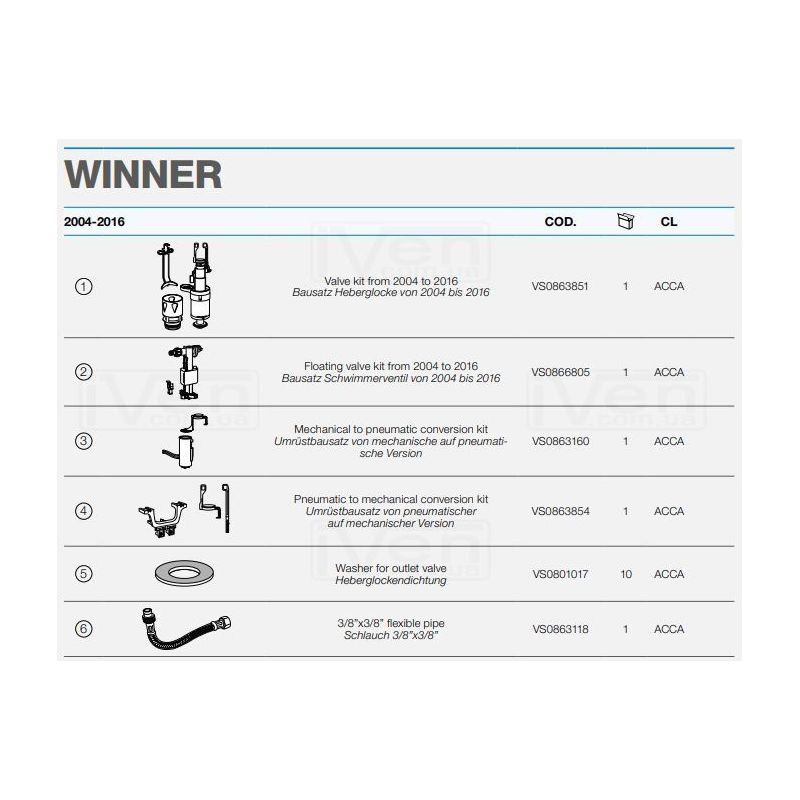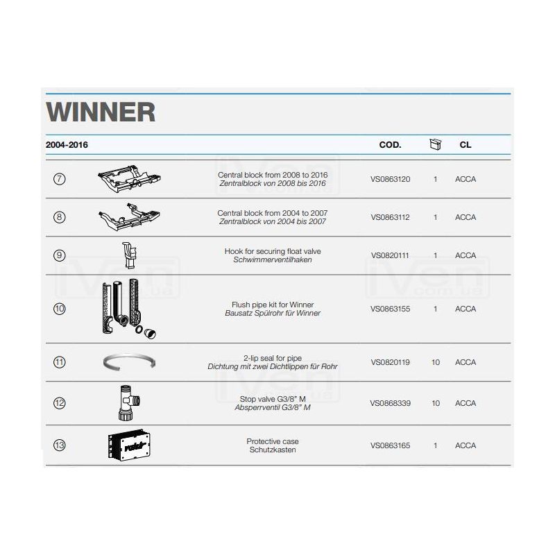 АКСЕСУАРИ ТА ЗАПЧАСТИНИ ДО ВИРОБІВ, ТА ЗАПЧАСТИНИ ДЛЯ ПРОДУКЦІЇ WINNER Valsir